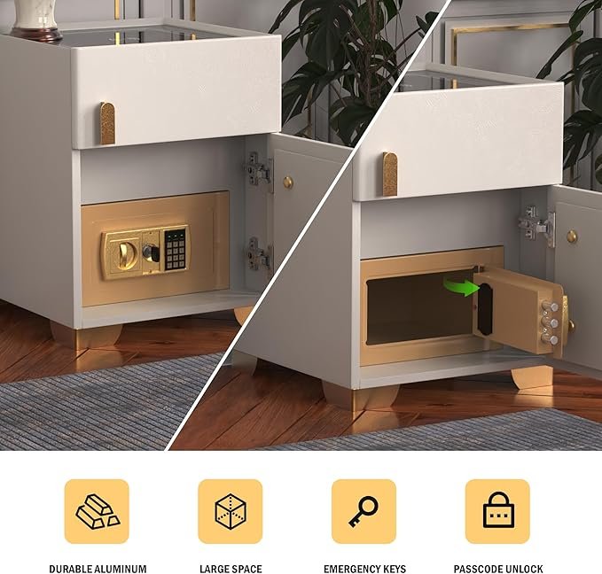 🔐 Built-In Digital Safe – Discreet Security at Your Bedside