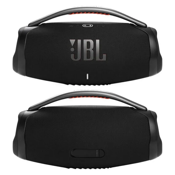 - IP67 dust and water proof: To the pool. To the park. The JBL Boombox 3 is IP67 dustproof and waterproof, so you can bring your speaker anywhere, rain or shine. Strong, bold design: Weโve updated the sleek, iconic JBL silhouette. With twin sidecaps and a sturdy metal handle with an eye-catching orange silicone grip, you can take your musicโand your styleโanywhere.