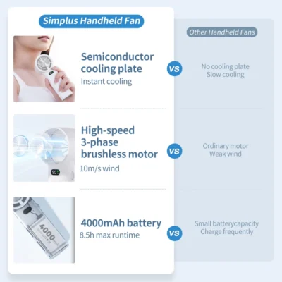 Simplus Handheld Fan Portable Bladeless Mini Fan with Ice-Cooling Function 100Level Adjustment Kipas Tangan 11H 4000mAh